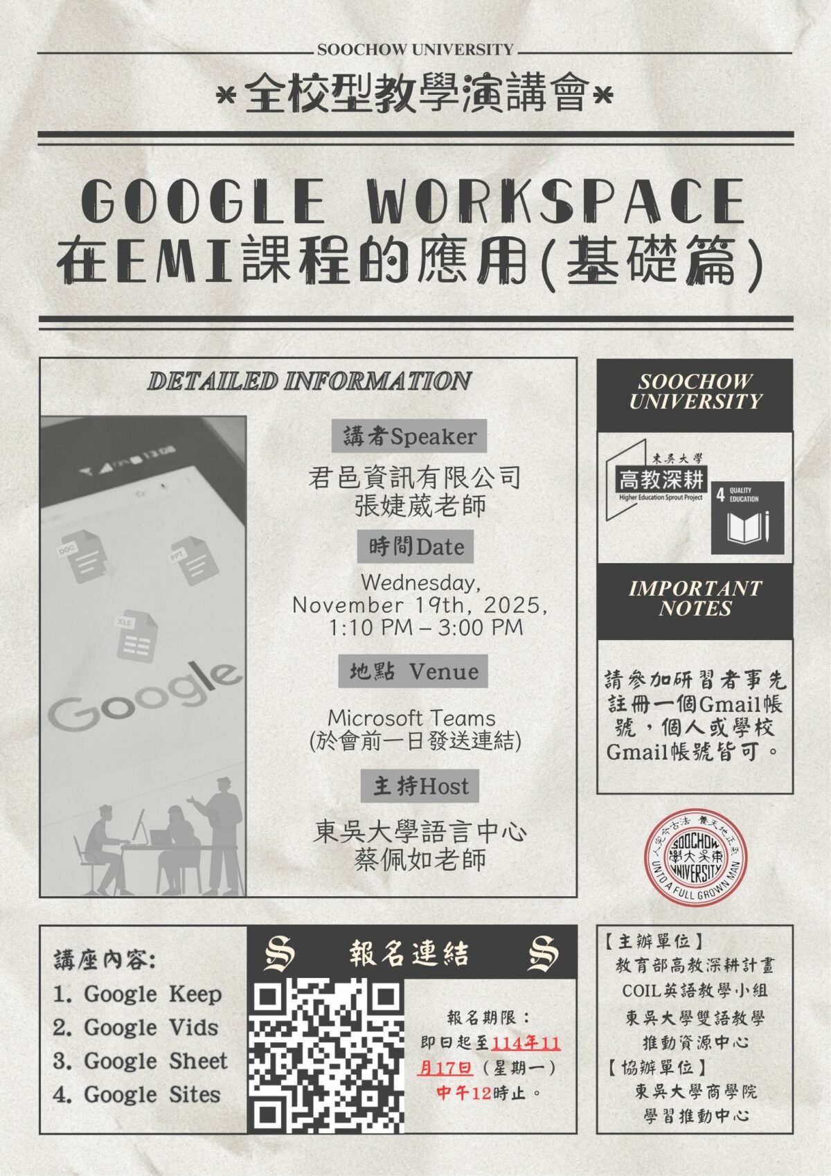 (三)講題:「Google Workspace在EMI課程的應用 (基礎篇)」。
